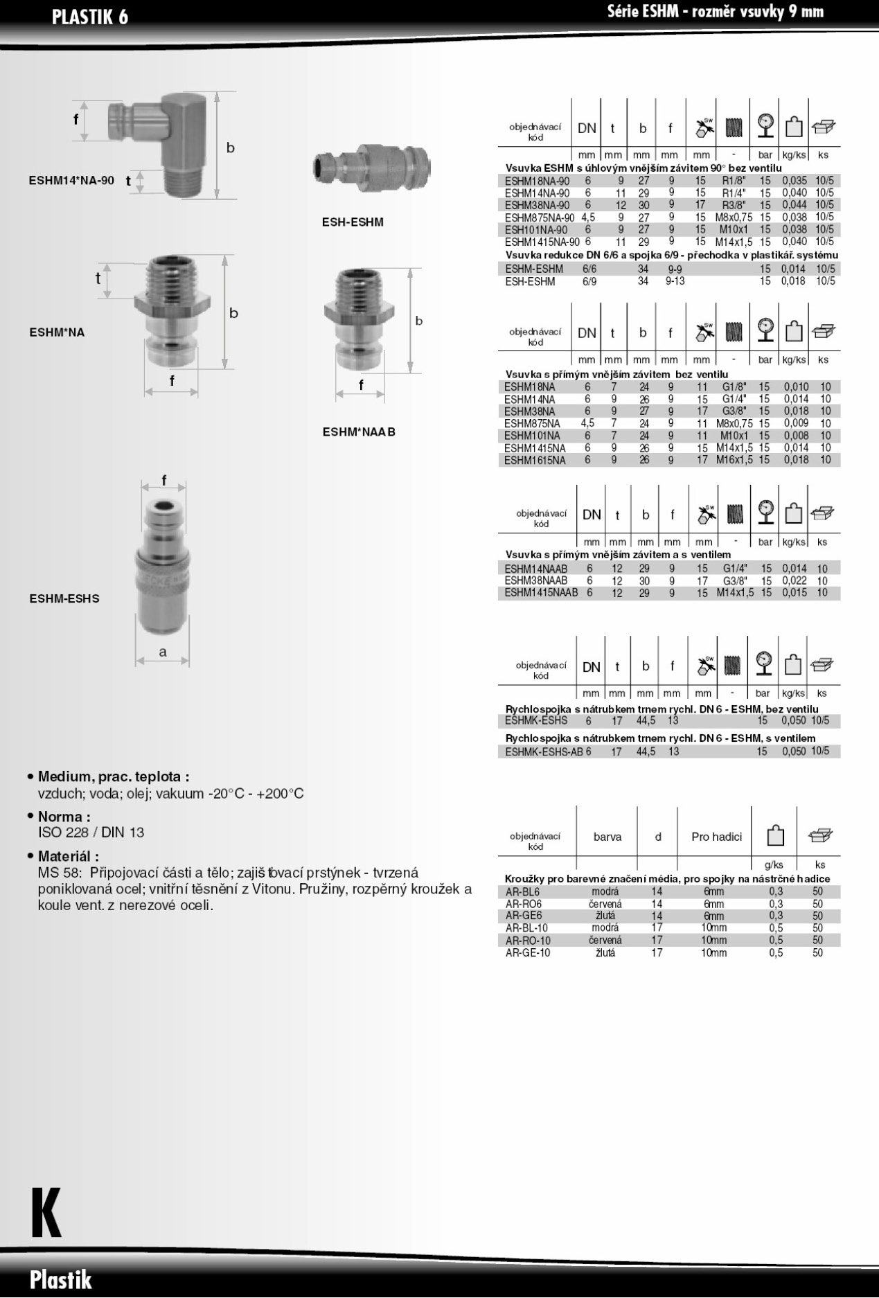 Rozlišovací kroužek AR-10 * je velikostí shodný pro sérii ESHM + ESH (série Dn 6 a Dn 9 mm). Kroužky pro jednoduché a zřetelné označení média, pro spojky na nástrčné hadice. Kroužek nasuňte na rychlospojku či vsuvku před montáží hadice.